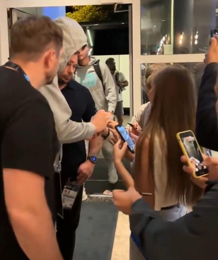 东契奇回国被球迷围堵:淡定在湖人球衣上签名 湖记:还剩18天合练
